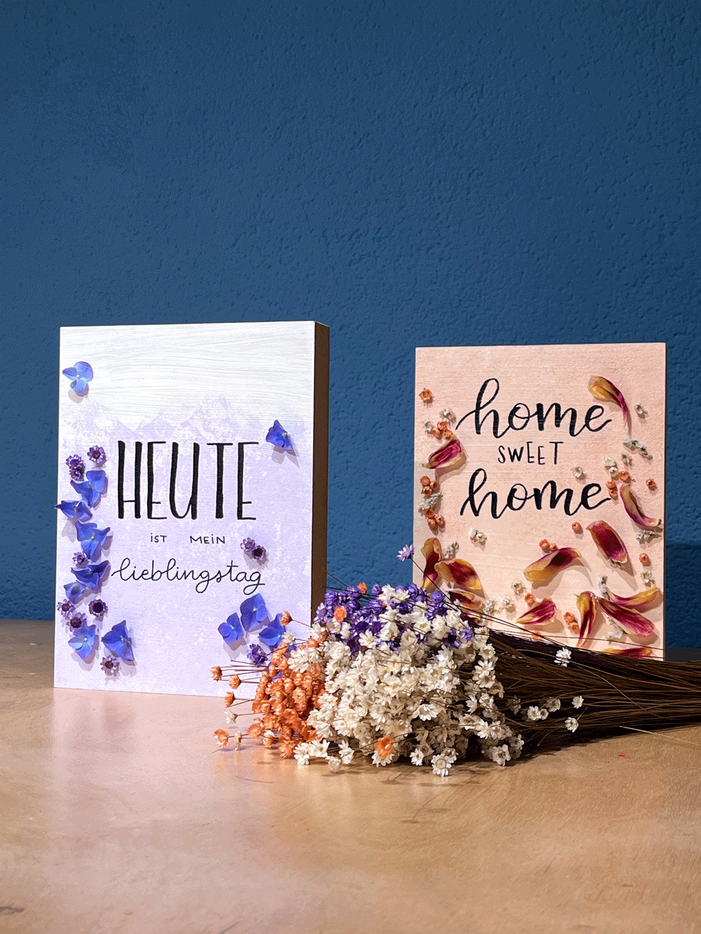 In diesem besonderen Workshop gestaltest du dein persönliches Lettering-Kunstwerk auf Holzblöcken – kombiniert mit Blumen zu einem harmonischen Wandobjekt.