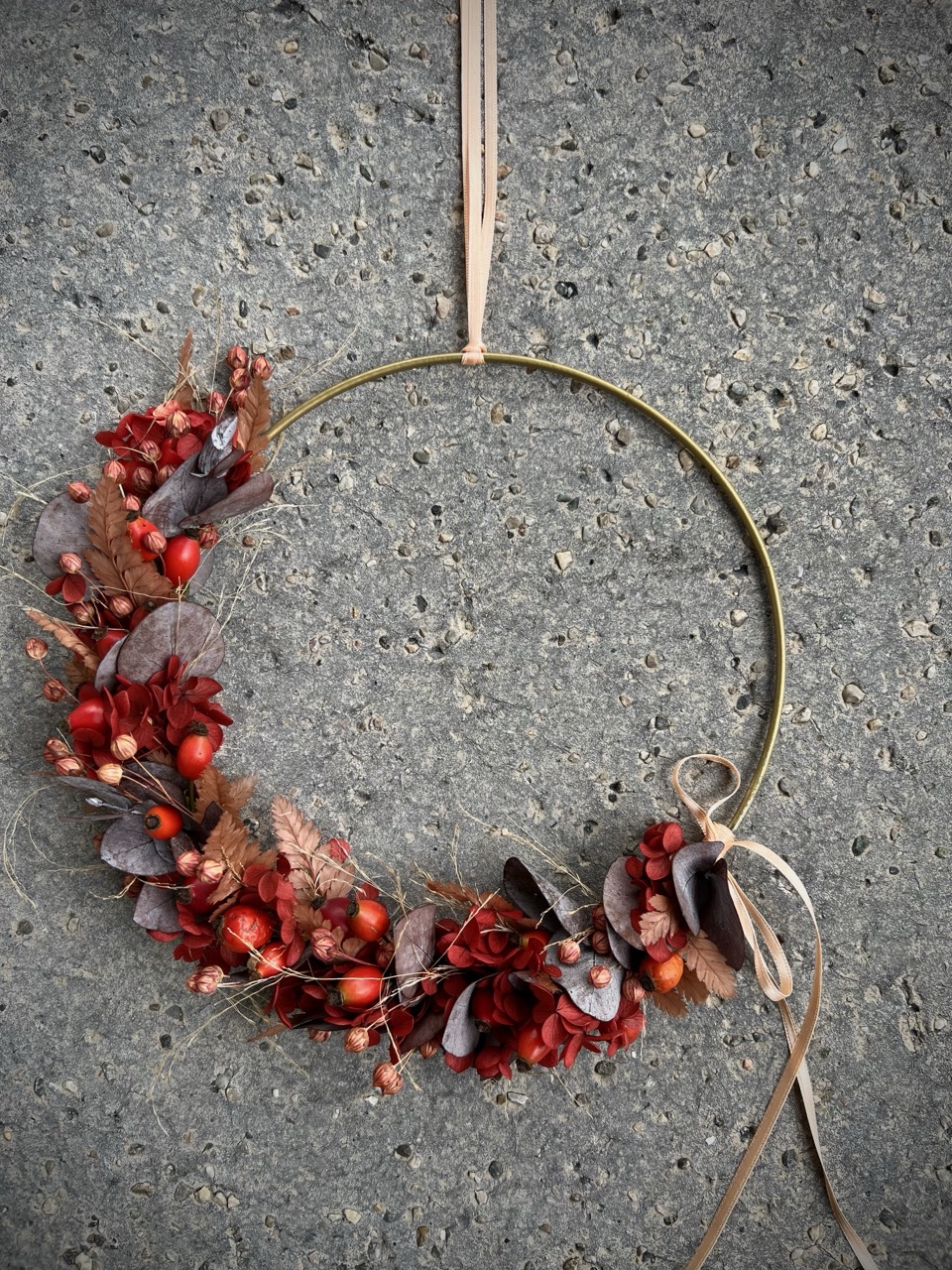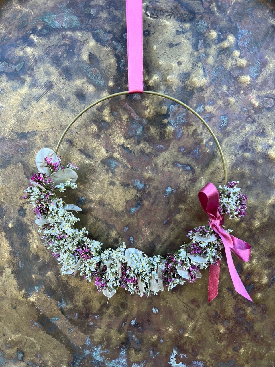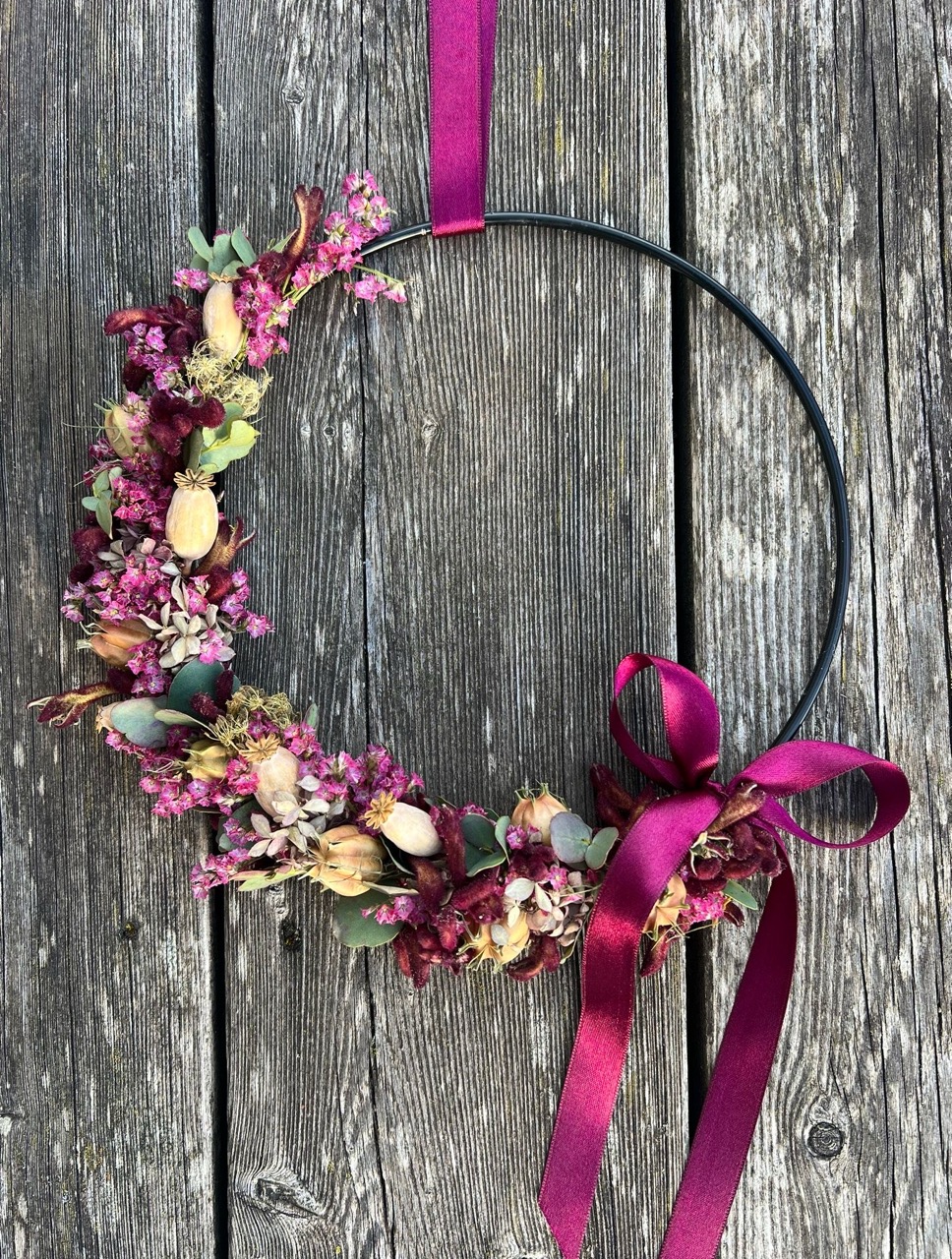 In diesem Workshop erfahrt ihr gemeinsam mit Meisterfloristin Maria Hauser wie man mit Trockenblumen zauberhaft schöne Kränze kreiert.